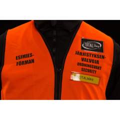 Total Gear Järjetyksenvalvojan liivi on markkinoiden ainoita EN ISO 20471:2013 Sertifioituja järjestyksenvalvojan liivejä. Järjestyksenvalvojaliivimme soveltuu siis sellaisenaan järjestyksenvalvojien suorittamaan liikenteenohjaukseen myös julkisilla teillä. (Luokka 2)