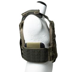 Paras suojaavuus: Soveltuu käytettäväksi yhdessä kaikkien standardikoon 10"X12" | 25cmX30 cm SAPI (the Small Arms Protective Insert) ja ESAPI (Enhanced Small Arms Protective Inserts) ballististen suojalevyjen kanssa. Vakiona myös taskut kylkisuojalevyille (6"x6" | 15cm X 15cm). Kuvissa näkyvät ballistiset suojalevyt eivät sisälly.