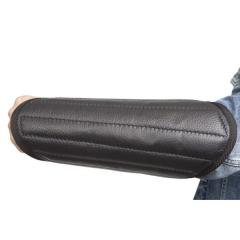 Tämä kyynärvarsisuoja on valmistettu laadukkaasta nahasta, jonka sisältä löytyy aramidi-vahvike. Aramidi on hyvin kulutusta kestävää synteettistä kuitua. Aramidia käytetään laajasti muun muassa sotilas- ja lentokonetekniikassa. Tätä aramidiseosta käytetään muun muassa raskaissa luotisuojaliiveissä. Sisäosa pehmeää puuvilla mukavuuden lisäämiseksi.