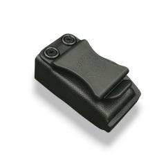 Hyvä ja jämäkkä IWB- lipaskotelo 9 mm pistoolinlippaille. Lipaskotelon valmistusmateriaalina on kestävä kydex. Lippaan vetokitkaa on mahdollista säätää säätöruuvin avulla.